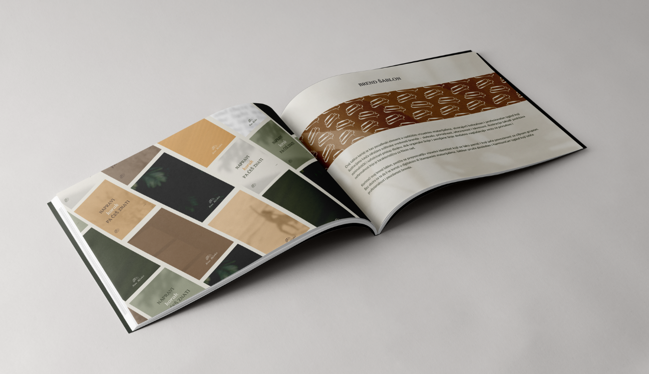 Zato sam oblikovala vizuelni identitet u zemljanim tonovima – maslinasto zelenoj, bež i toplim nijansama braon — bojama koje prizemljuju, stvaraju osećaj sigurnosti i poverenja, a istovremeno osvežavaju i otvaraju prostor za autentičan izraz a koje su i skladu sa njenim senzibilitetom. Minimalistički pristup, sa dozom radosti i lakoće, osmišljen je tako da ne guši sadržaj već ga ističe.